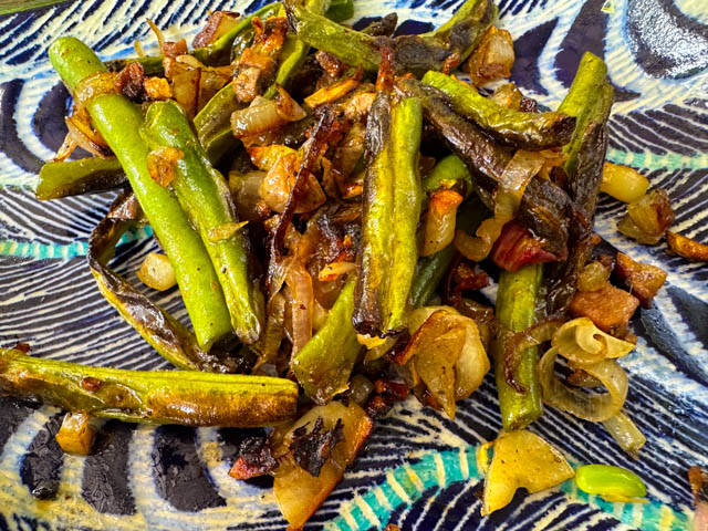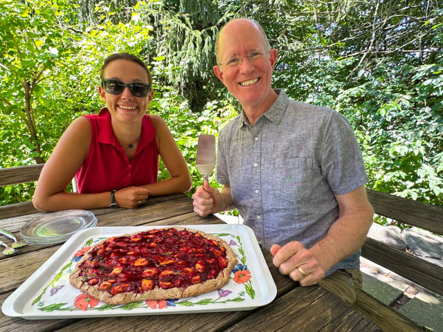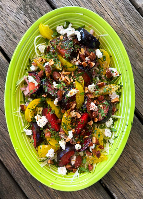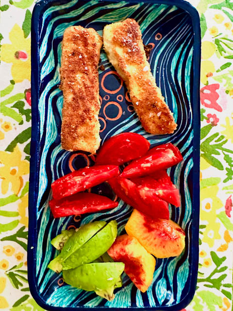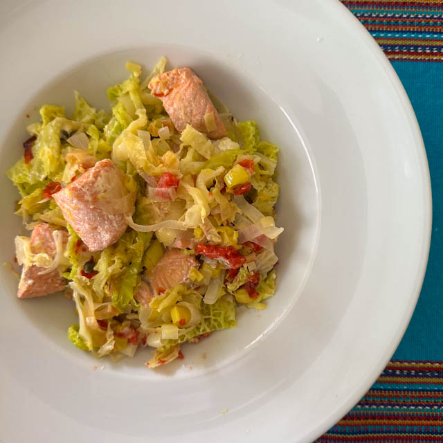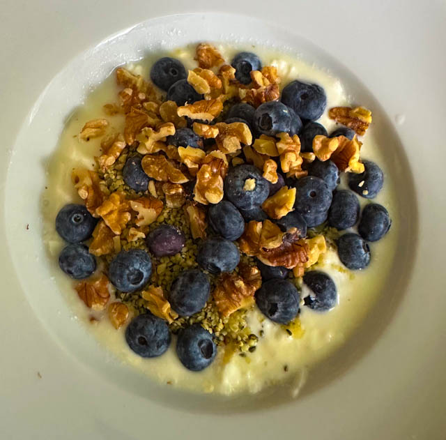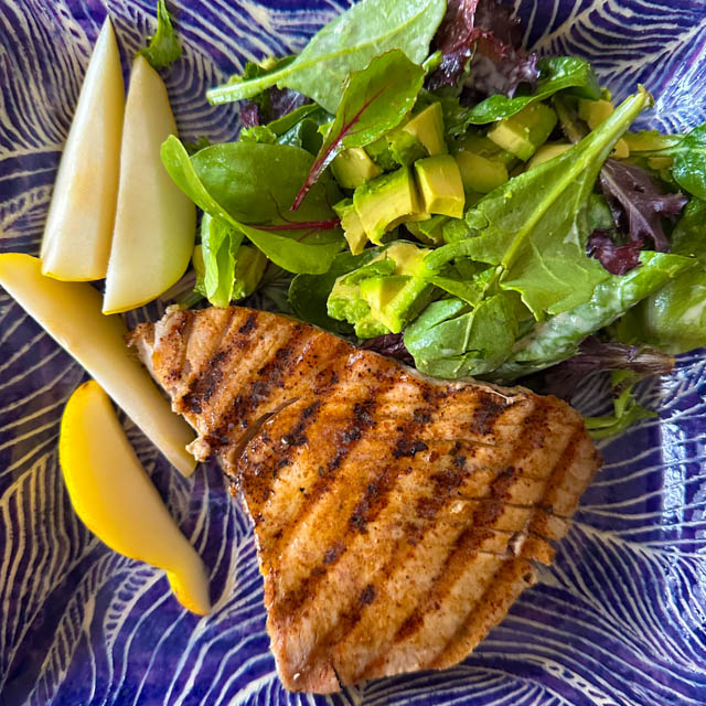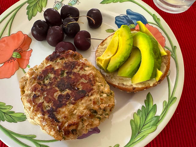 As much fun as it is to travel and try new things, we really like our own food, a cuisine which has admittedly developed over many years of seeing food as an adventure. Lately, because I’ve had so much other stimulation, we’ve been falling back food-wise onto tried and true standbys, many of which are on the blog. That’s why you’ll see so many repeats below; but you’ll also get a sense of what we LOVE to eat.