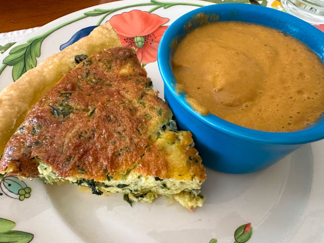 Spinach Quiche with (ugly) Yellow Gazpacho