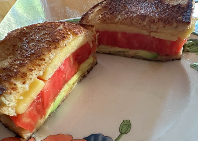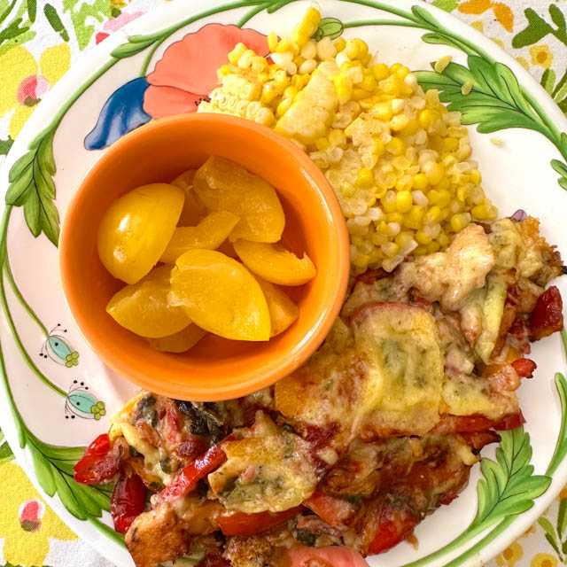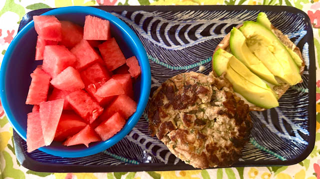 (Breadless) Tuna Melt, with yellow plums and fresh corn