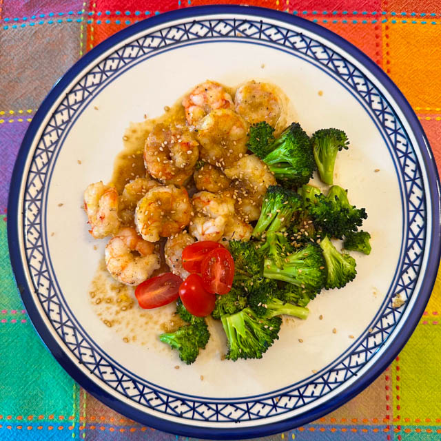 Ginger Shrimp with steamed broccoli (a new recipe attempt which didn’t meet blog standards)