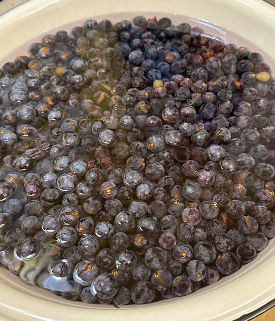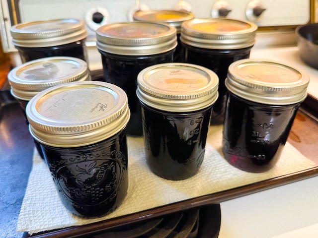 Also, we’ve got a bumper crop of delicious tomatoes, and we’ve been using them every way we can think of. In addition below, you can see I made 72 ears of corn worth of corn chowder to freeze, and my husband put up eight jars of grape jelly.