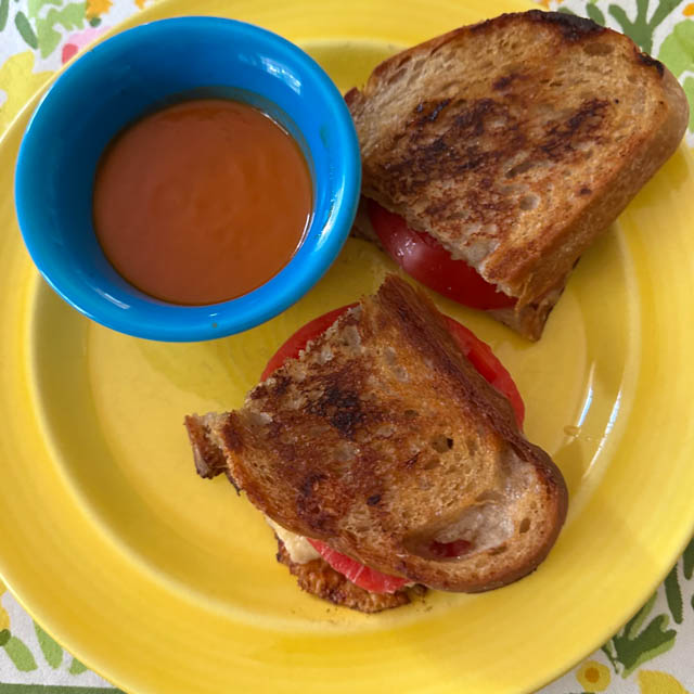 Easy Tomato Roasted Soup with grilled cheese and tomato