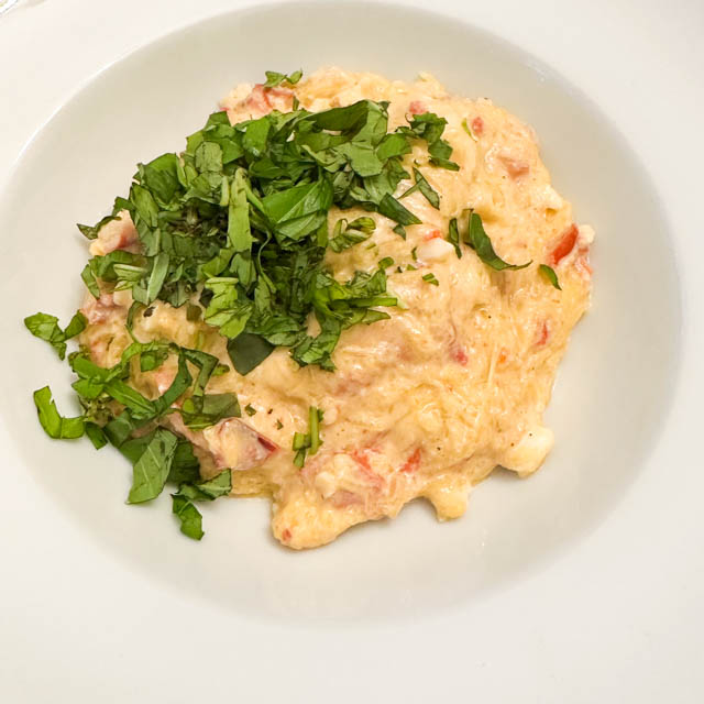 Spaghetti Squash with Sea Bass and Vegan Alfredo