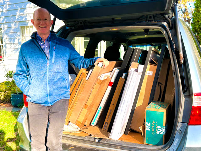 He framed 66 works for the show–30 for the main floor, 36 for upstairs– and spent a large chunk of the last couple days boxing paintings, transporting them, hanging them, and labeling them. This man is a jewel, and I am so very thankful for his generous and unflagging support. I don’t take this for granted for one second!