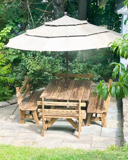 - I’m grateful we got our picnic table refinished, reclaimed after 30 years of hard use, and a spring of abuse by our resident robins above in the umbrella (as fun as it was to have them, we will discourage them from nesting there in the future!). It feels great to have saved our dear table for the next 30 years. I’m grateful for all the amazing meals and times we’ve had around it.