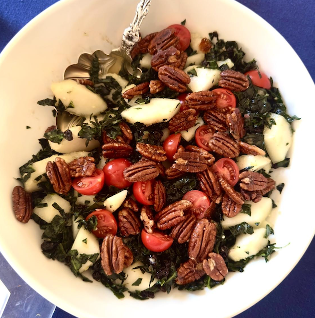 Kale Pear Salad (with candied pecans substituted for the pine nuts)