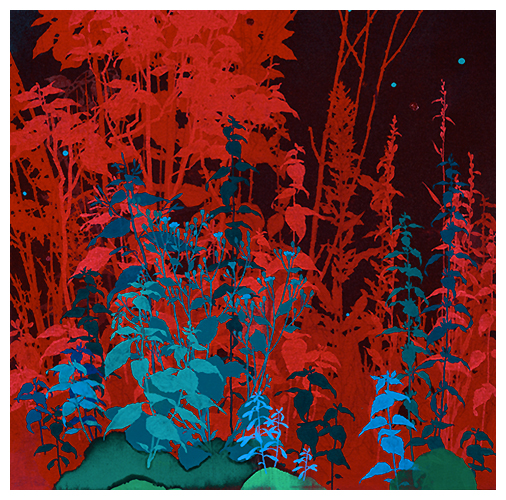 See him painting foliage freehand without a reference.