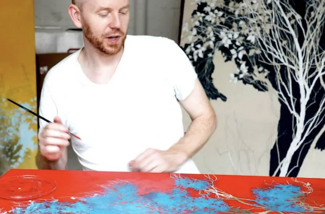 Here you can see him painting and pouring over drawn marks. It is amazing to watch that and know it is oil paint.