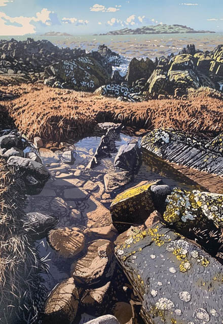 I love the reduction prints of Joshua Miles, which are astonishing in their detail and complexity. He splits his time between South Africa and Scotland, and does work derivative of both places.