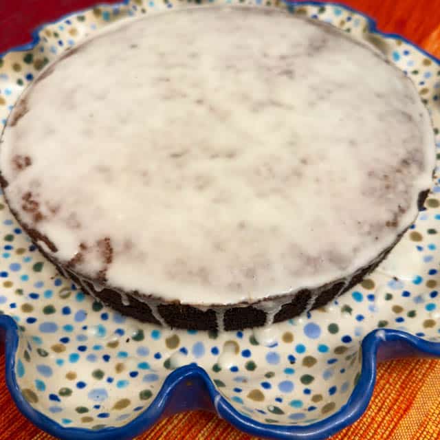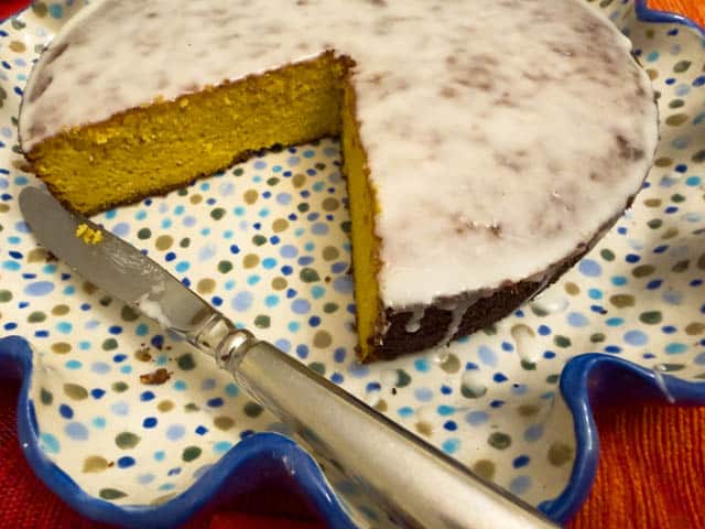 Lightly frost it by adding a glaze made of confectioners’ sugar mixed to a paste with lemon juice and a little water.