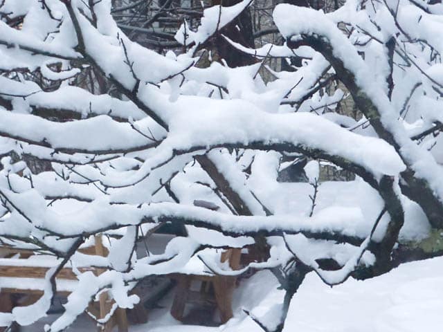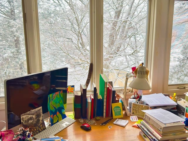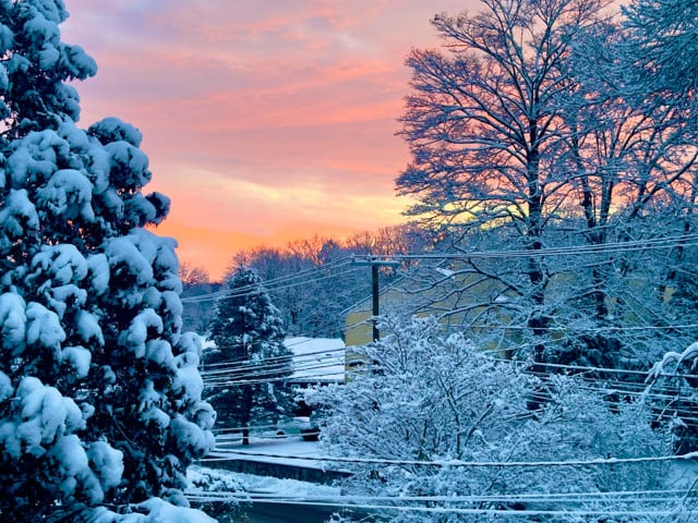 We now have much more snow than shown in these recent photos. The snow this morning is up over the wheel wells of our cars in the driveway, and shoveling out will commence later today. We’ve had a pleasant time of it, during this much talked about storm, spending our time praying about chaos and calamity in other parts of the world, working, painting, cooking, talking on the phone, and reading. All these photos were taken from inside my house, and most were taken from my office/studio. I send this blog out, hoping you are safe and warm too, wherever you are.