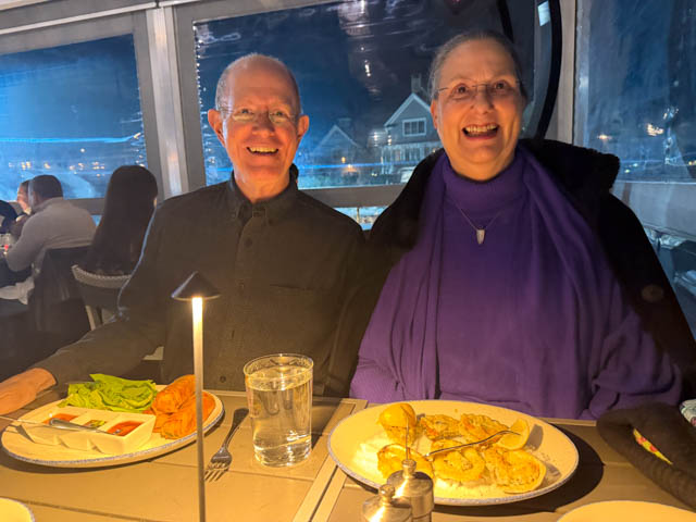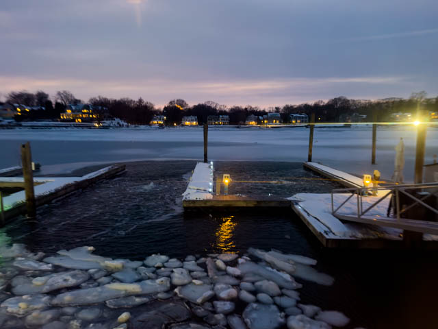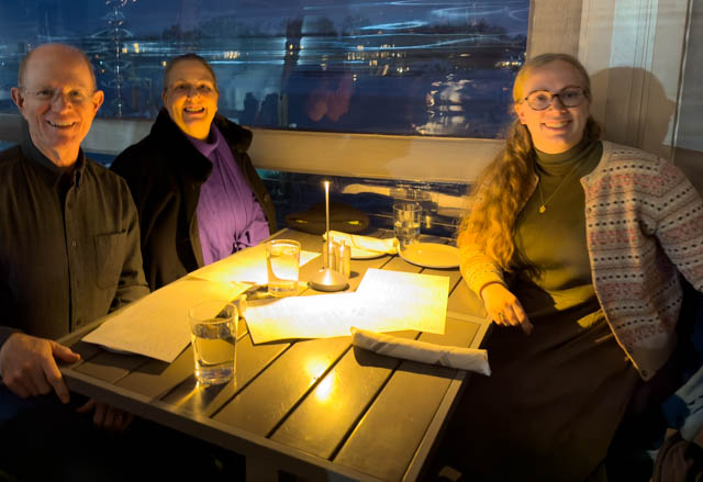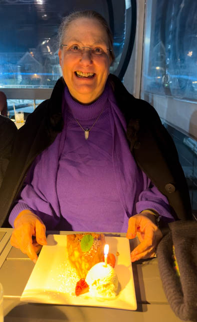 I had a nice “special day” as you can see in the photos of this post. Our older daughter flew in from California for the occasion, which was so sweet of her to do. I opened gifts (my sister gave me the Christmas plates) and talked on the phone. My husband made me pancakes and chocolate chip cookies. The three of us went out to dinner at Rowayton Seafood, which was kind of funny because we sat out on the deck, on the water’s edge of Long Island Sound, in 7º weather, with the wind billowing the makeshift walls, but the food and companionship was wonderful. We had fun. We came home to warm up by the fire and I won at Phase10.