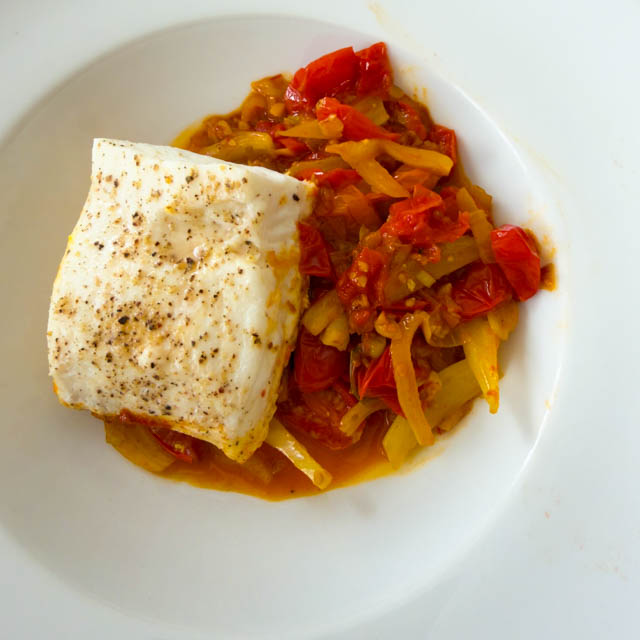 Halibut with Saffron Tomatoes and Fennel Recipe