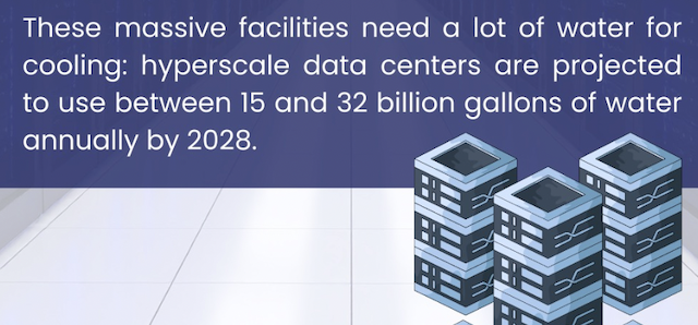 • A single large data center can consume as much water daily as a medium-sized town to cool their computers. U.S. data centers consumed 17 billion gallons of water in 2023, with projections indicating this could quadruple to 68 billion gallons by 2028 as AI workloads intensify cooling demands.