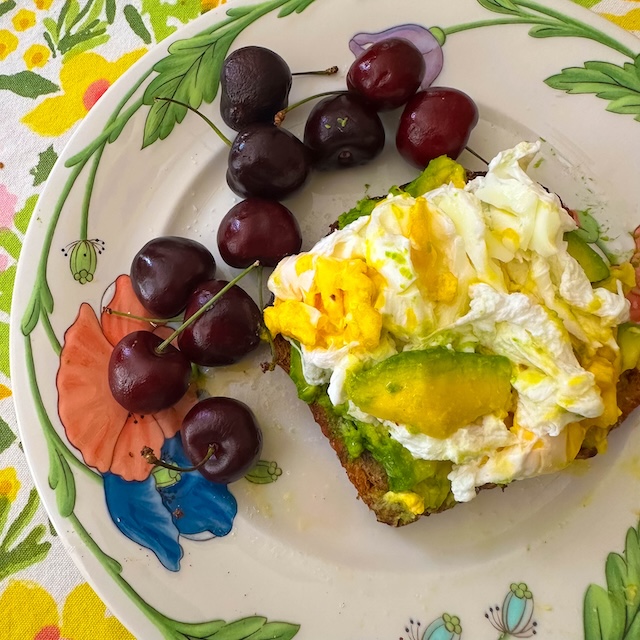 the two poached eggs. The buttered toast.