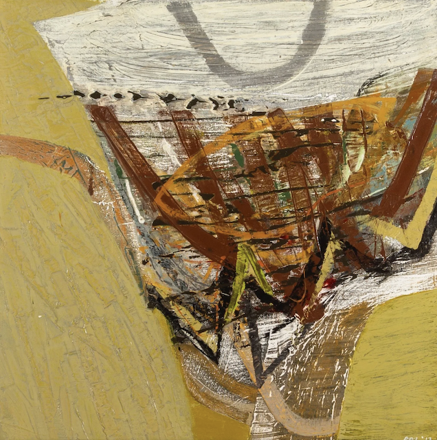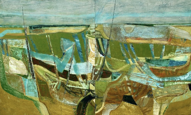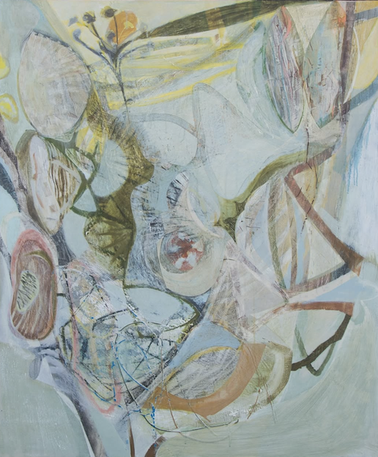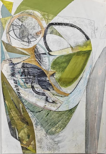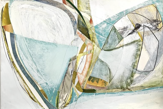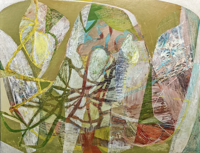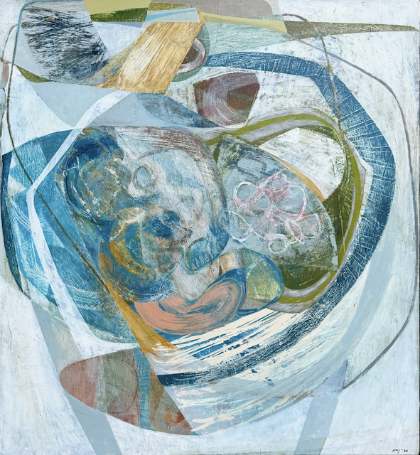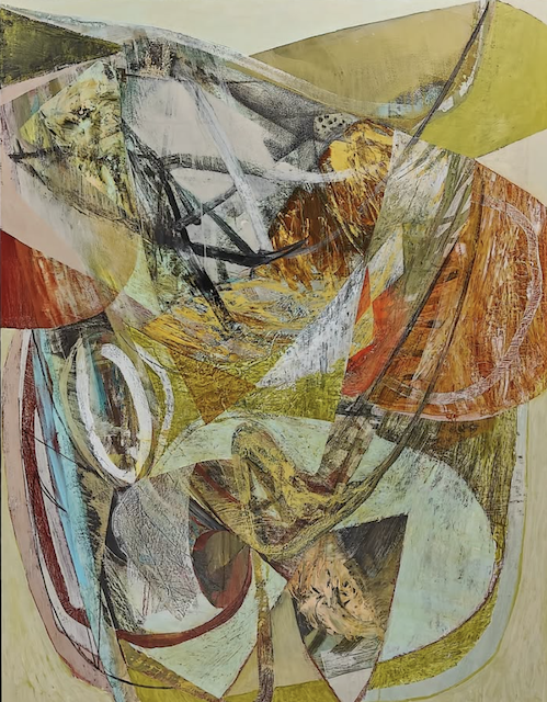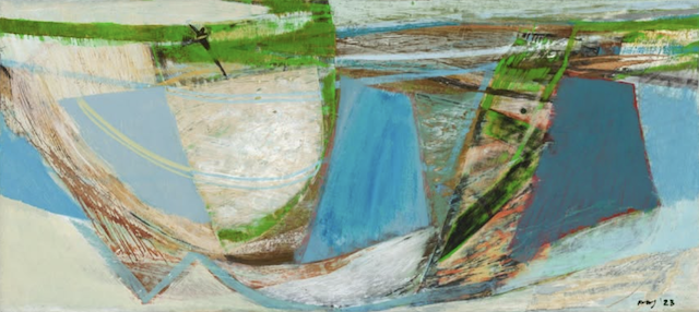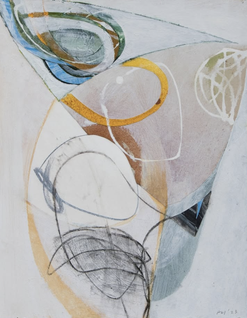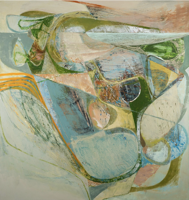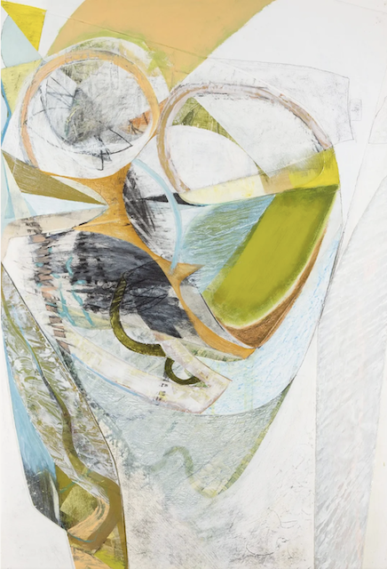 I like Peter Joyce’s artwork, even though it has less value contrast and bright pigment than I prefer. He makes me want to use more white tones in my paintings, which I definitely don’t usually gravitate to. I also like his shapes, many of which are made by taping off areas as masks to preserve the painted surfaces beneath.