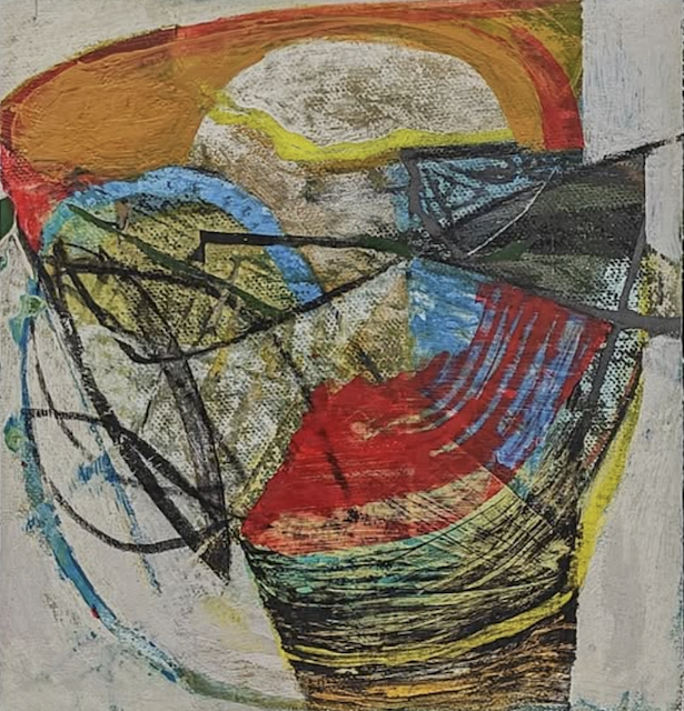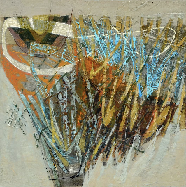He is a British artist working in France. He paints mostly in acrylic with some mixed media and collage, and his works can be quite pricey.