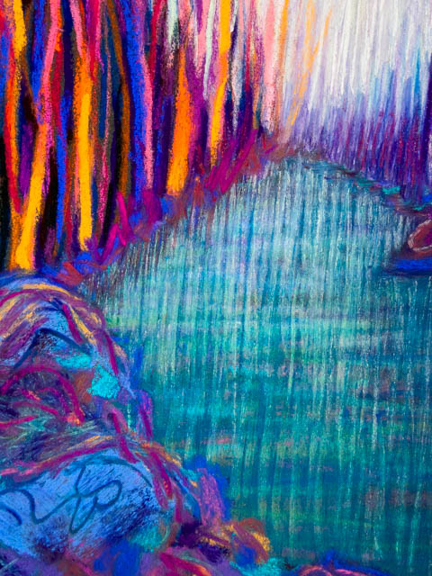 This painting is of early spring in Huntington, in a different color way that makes it look like out of a fairy tale. This piece is 12″x16″ and done in pastel.